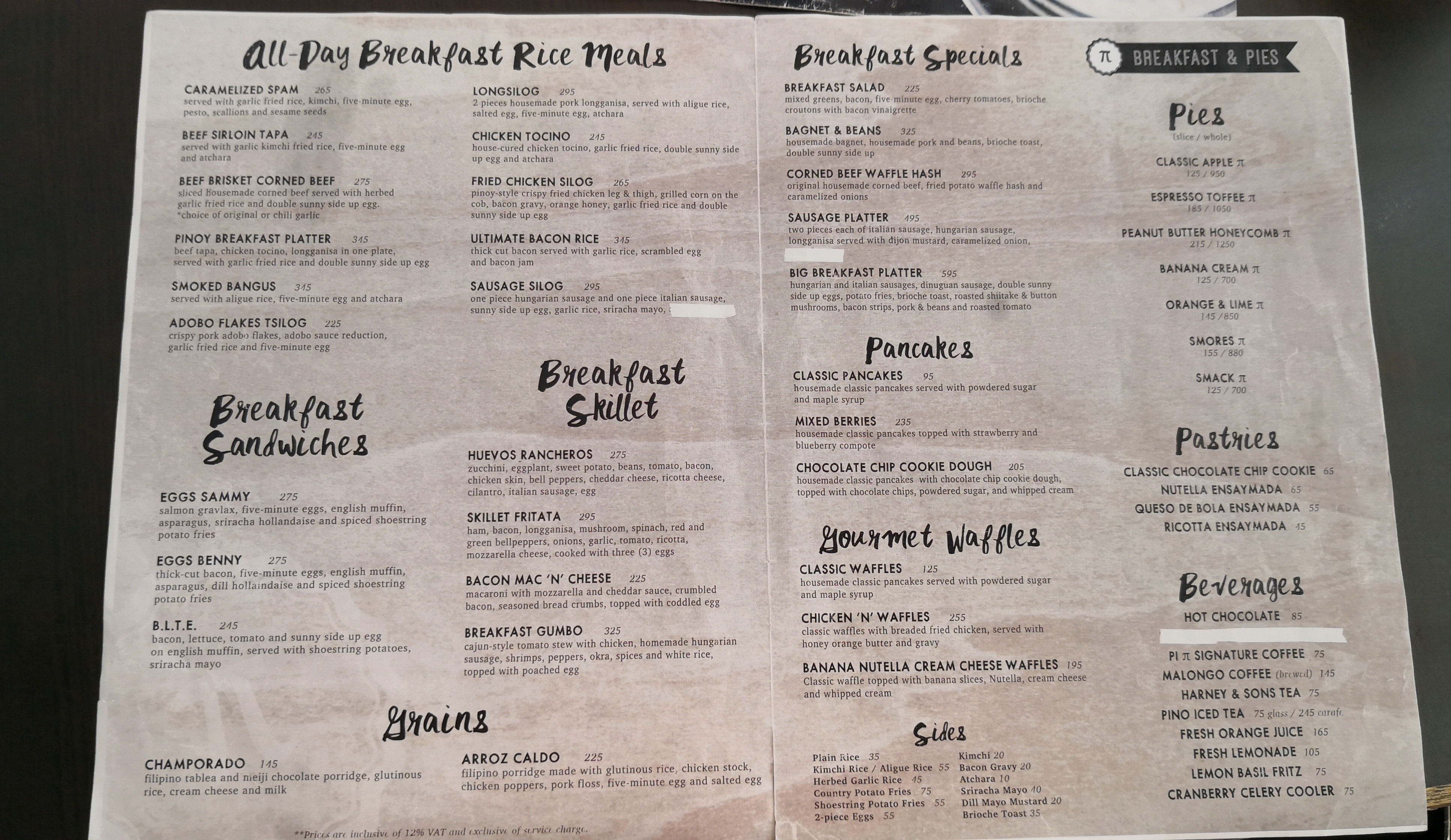 UPDATE: Unfortunately, Pi Breakfast & Pies has shut down permanently. However, you can still enjoy their breakfast specials at Pino Restaurant in Quezon City – more info on their Facebook and Instagram.