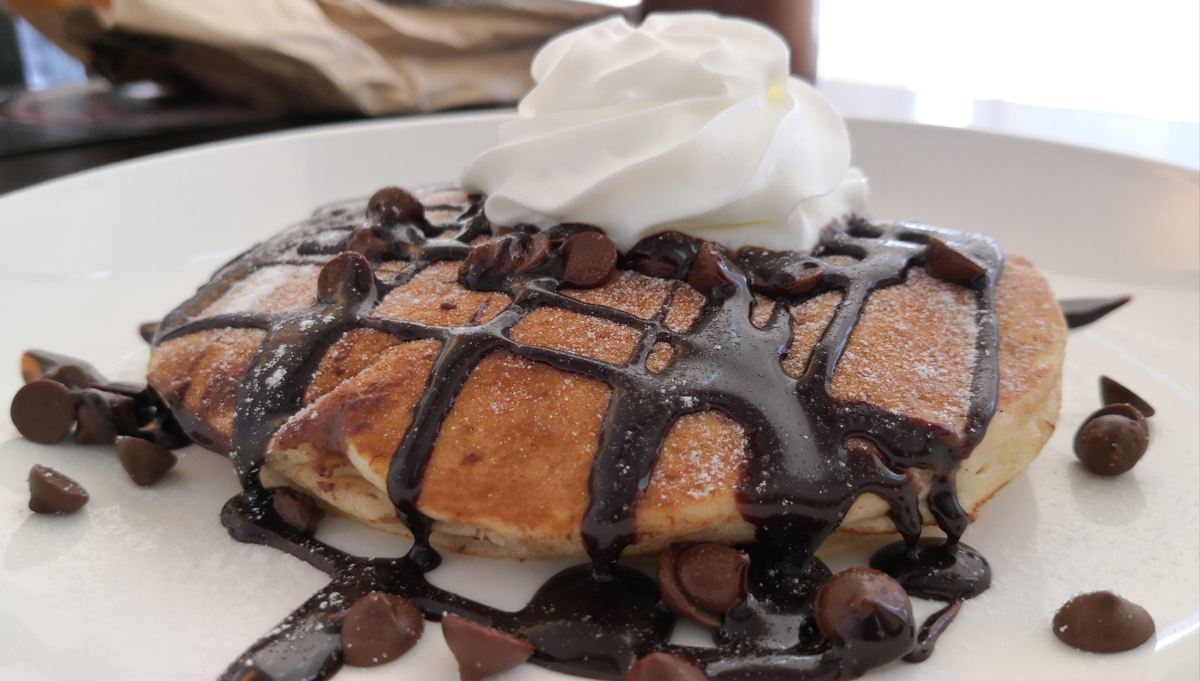 Two pieces of chocolate chip cookie dough pancakes is not quite a stack, but it’s more than enough. We had it for dessert, although it felt more like a meal. The chocolate chips are scattered over the pancakes and mixed into the batter, so get a mouthful in every bite. The dusting of confectioner’s sugar is completely unnecessary in this highly indulgent dessert-slash-breakfast but looks cute in pictures.