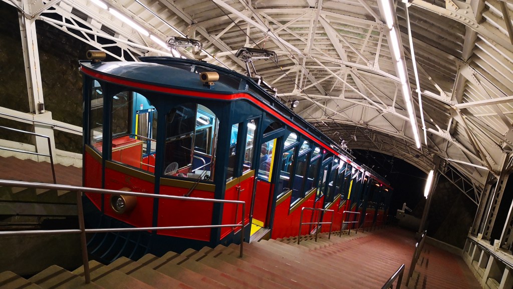 The Rokko Cable Car has been operating since 1932. You can sit in the open-air car at the back or the observation car in the front. We arrived at the station shortly before the train departed, so we rushed in and settled in the open-air car. Once we started making our way up the mountain, we moved to the much warmer observation car to avoid the biting cold. The ride only takes about ten minutes, but it’s a bumpy ten minutes, so it’s best to hang on to the railing as you go.