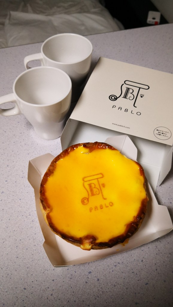 Although it’s named after the Spanish painter, Pablo originated in Osaka. It made its way to the Philippines in 2016. I witnessed the hype when people first got their hands on Pablo’s famous cheese tarts, but the shop was a long ways away from where I was living at the time, so I never got around to trying them. I was pleasantly surprised to discover how much cheaper Pablo is in Japan (¥900 or around PHP 420 compared to PHP 600 in Manila). We bought one to share and took it to the hotel.