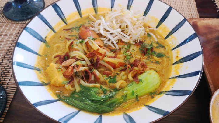 Another dish I’d be happy to order again and again: their seafood laksa. This photo definitely doesn’t do it justice. The thin noodles soak up all the spices and go perfectly with the prawns and vegetables. We got it to share, but if you’re hungry (and love laksa), it could be a meal for one.