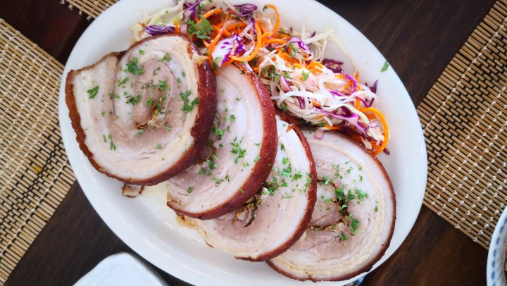If you’re dining with a group, the porchetta is a must-try. The tender, fatty pork is so savory. Make sure you get a bite with some of that crispy layer of skin for the full experience.