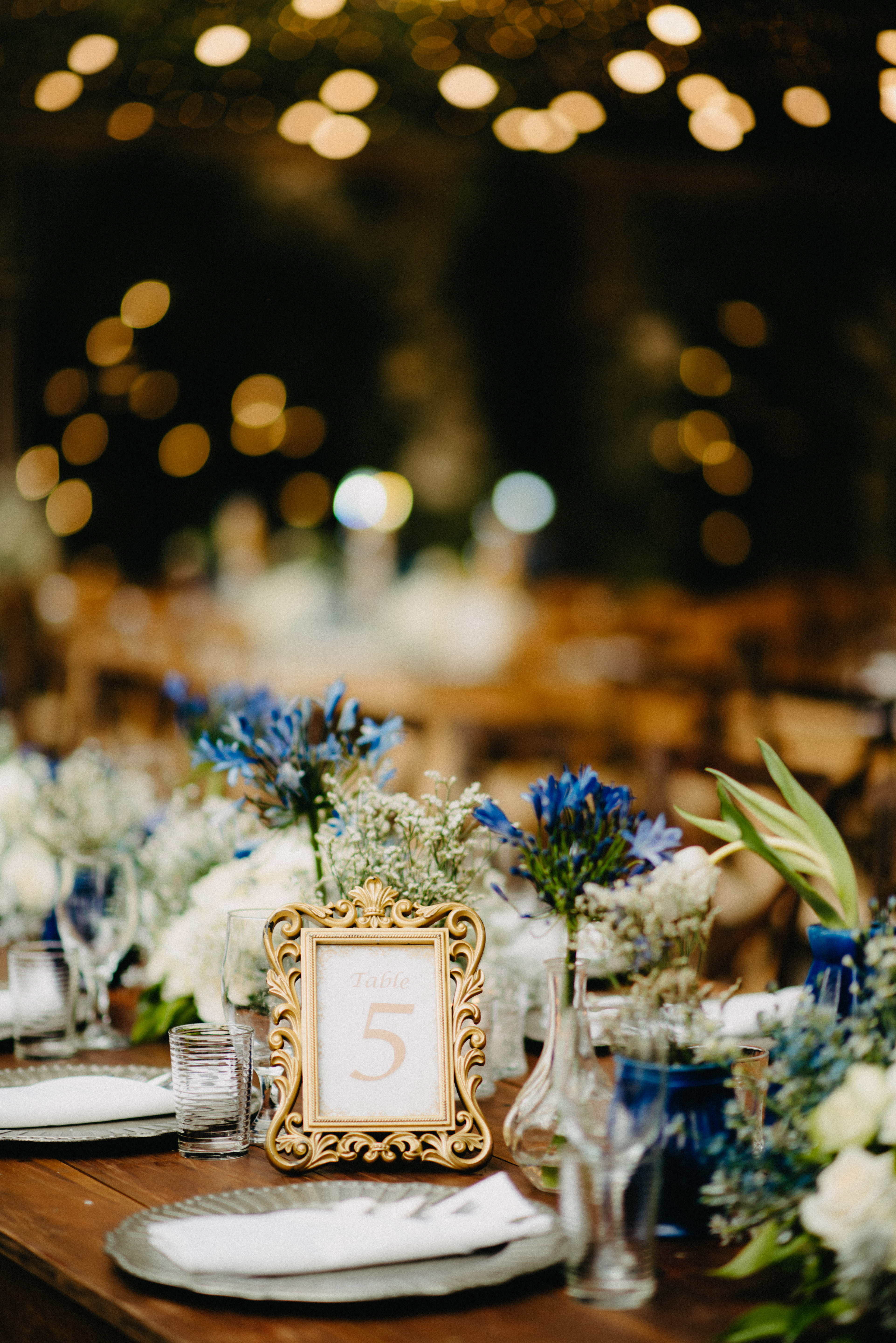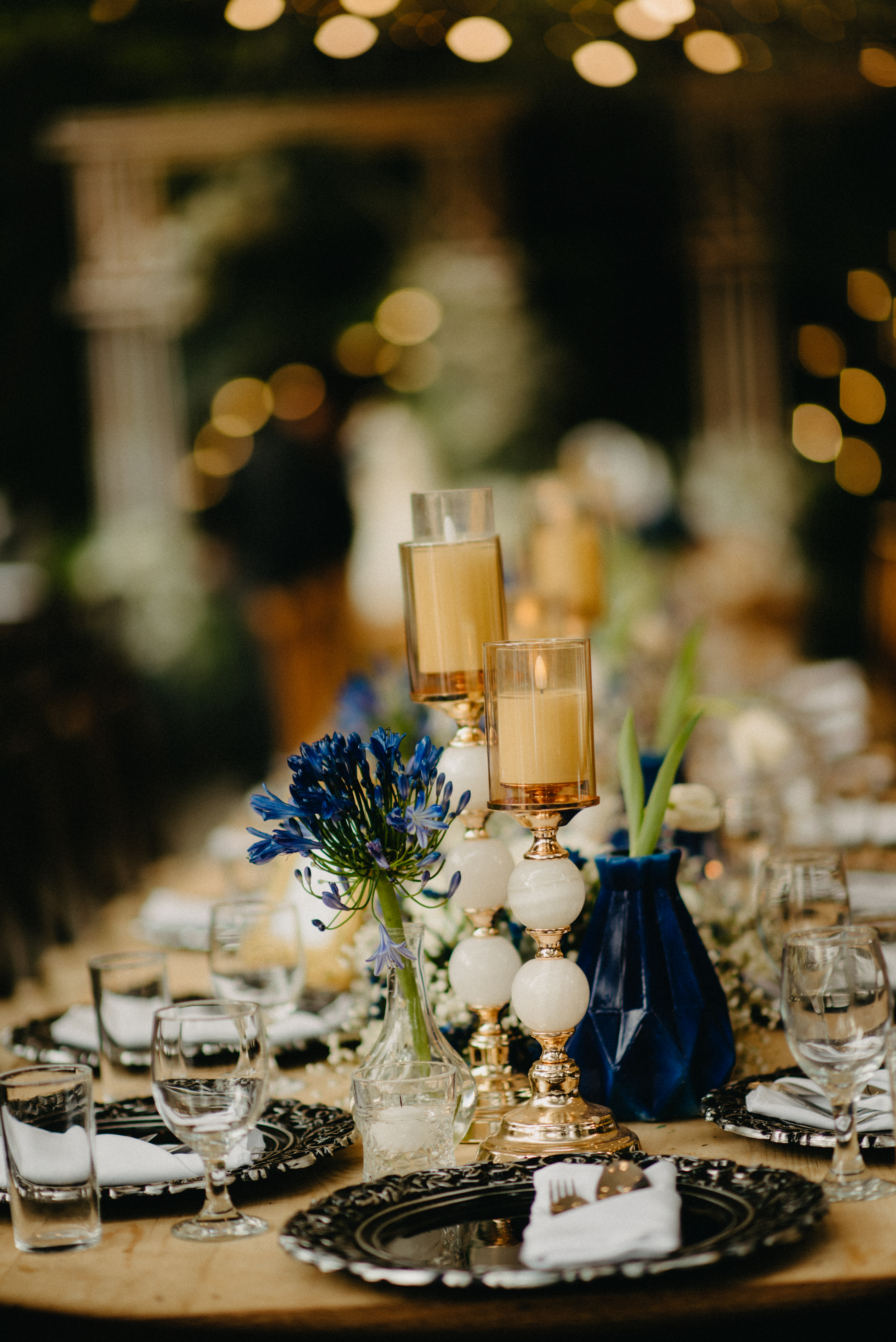 From the ceremony to the reception (and our engagement too!), Miel’s Flowershoppe and Events Styling brought the venue to life. We told them we wanted a midnight blue motif with accents of gold, silver, and white. They took the idea and ran with it and put together a dramatic backdrop with twinkling lights.