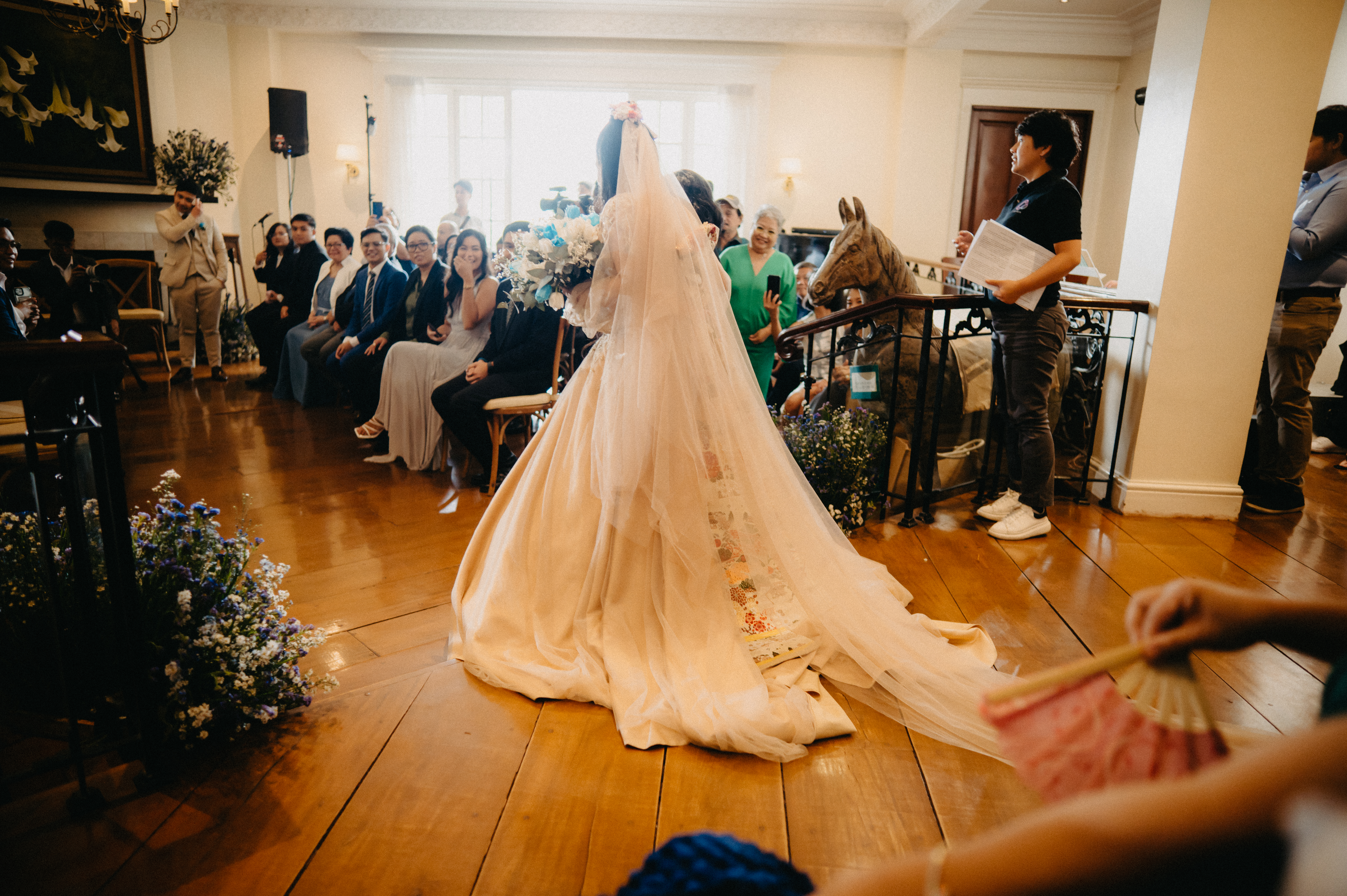 The music was a crucial part of our wedding. We bonded over a love of OPM, so we wanted to make that well-represented from the ceremony to the reception. We enlisted Jessica Ladines-Mirandilla to play the piano as the entourage and I walked in. She did a piano version of Ben and Ben’s “Ride Home” for our families, godparents, Team Groom, and Team Bride, and then a beautiful, stripped-down take on the Eraserheads’ “Huwag Kang Matakot” when I came down the stairs.