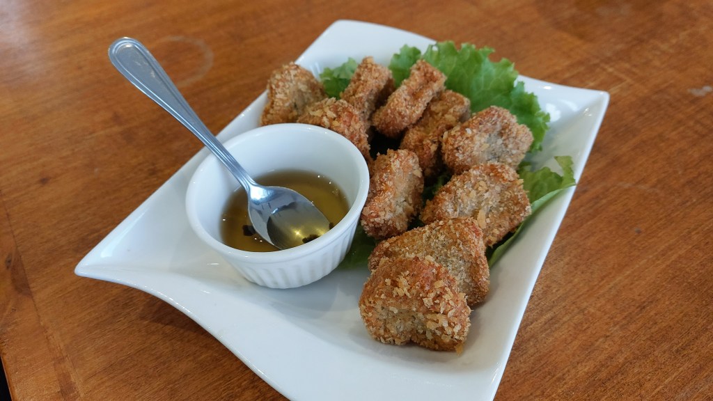 To kick off our meal, we always opt for their tod mun khung, or shrimp cakes. They are coated, fried to perfection, and served piping hot alongside a tangy plum sauce for dipping. We’ve definitely been guilty of having leftovers of our main course just because we indulged in too many shrimp cakes and ran out of room!