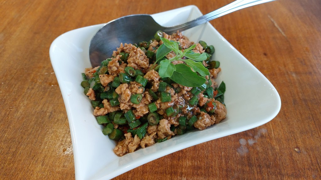 Although Som Tam specializes in seafood, there are plenty of options available for those with dietary restrictions or who simply don’t prefer seafood. For instance, their krapow nua, or stir-fried beef with basil, is a simple yet satisfying dish that showcases the bold, peppery flavors of holy basil.