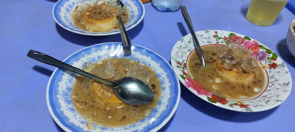 We had planned a walking food tour for our first evening. With this in mind, I survived on water and a few snacks during the day. This turned out to be a good decision because we tasted no fewer than 13 kinds of food! Some of my favorites were the fish noodle soup, rice cracker with banana slices, banh mi, and caramel flan.