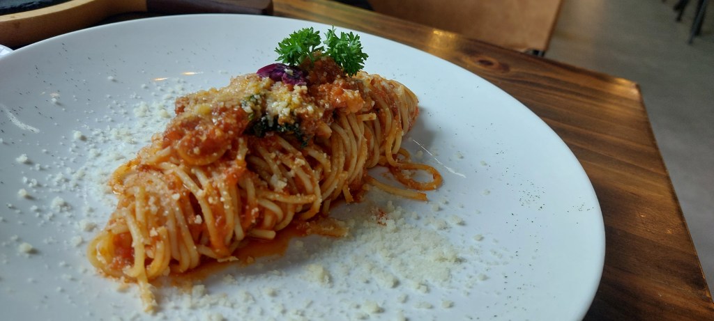 Their bolognese pasta was just al dente enough. The sauce was tart and a little sweet, with a couple of sliced cherry tomatoes thrown in, adding to the freshness.