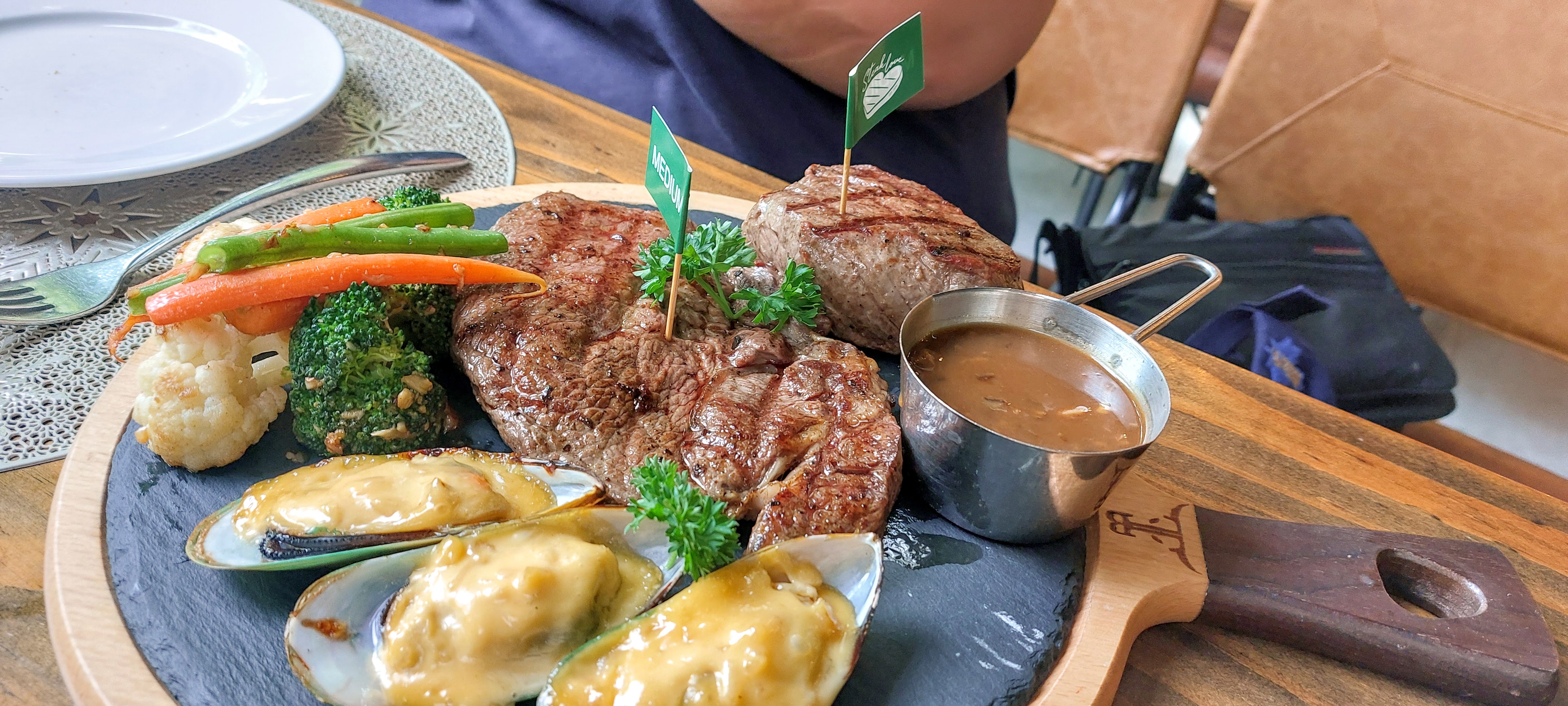 Steak Love is a chain restaurant that specializes in – you guessed it – steaks. We had a late lunch at their Độc Lập branch and shared a combo plate and some pasta. Their Combo Tender Love comes with two cuts, a tender and a fillet, as well as grilled mussels and stir-fried vegetables. The whole thing is VND695,000, which, after conversion, is only PHP1,504.