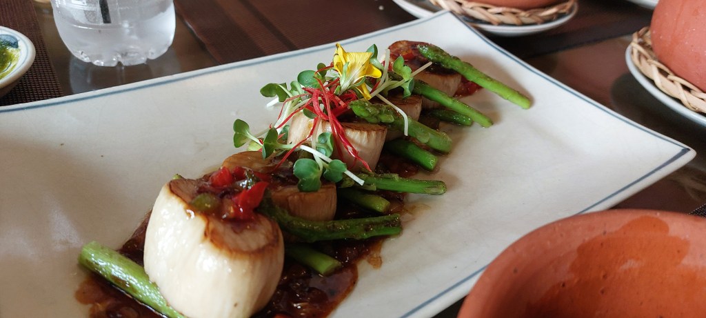 In the baked king oyster mushroom dish (VND148,000, about PHP322), they slice up and serve pieces of the stem instead of the cap. This stem was impressively thick. The mushroom is complemented by some asparagus spears, with everything in a savory sesame sauce. This was easily the most filling dish we had.