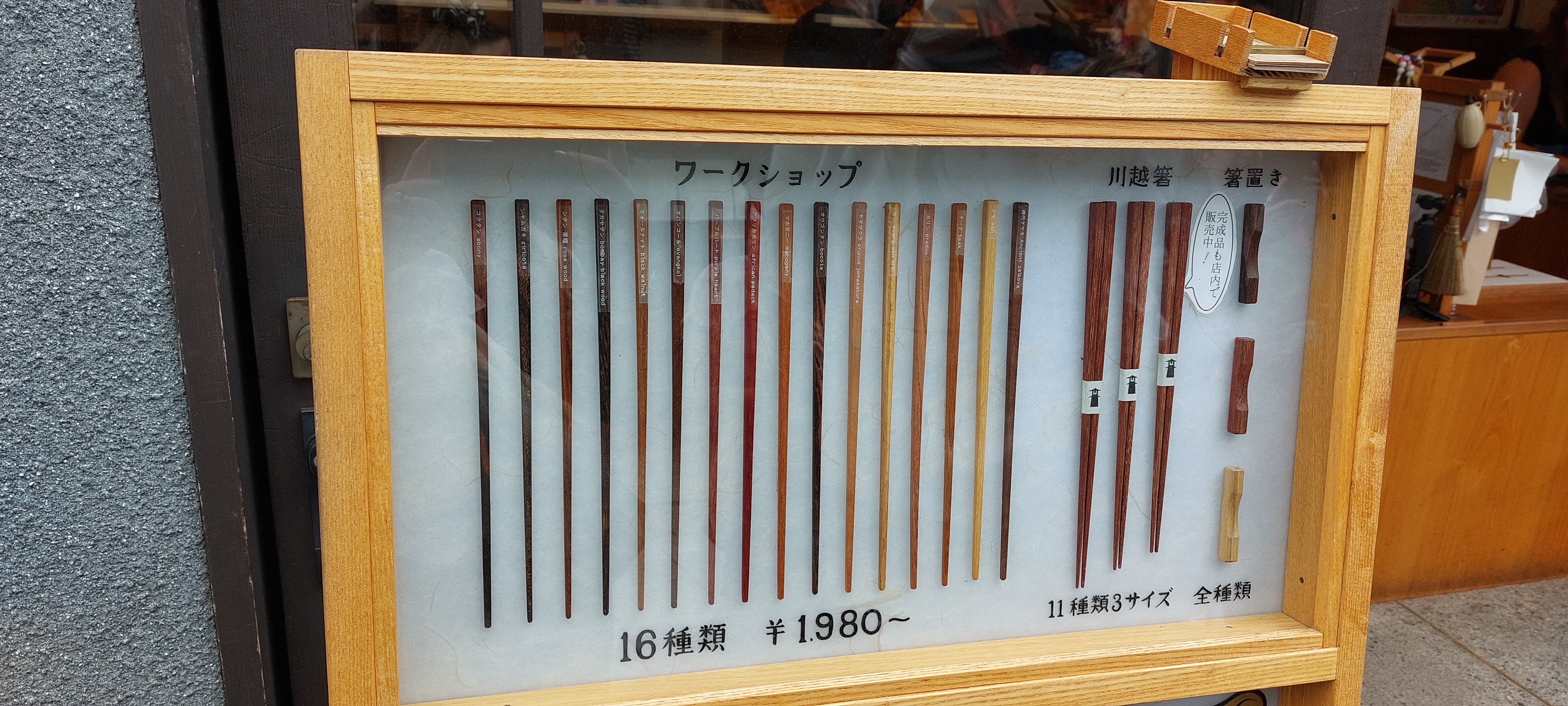 | 12:00pm | ~¥2,000-6,600 | Walk to Wood Works and craft a pair of chopsticks. |