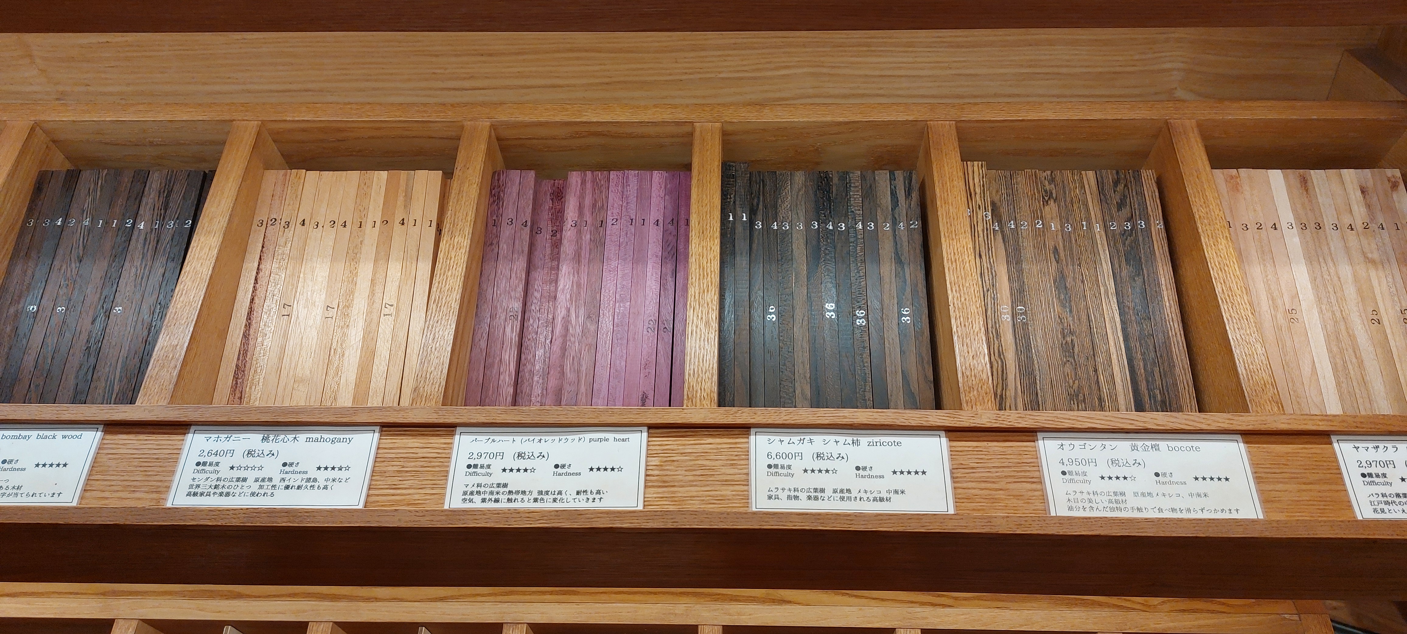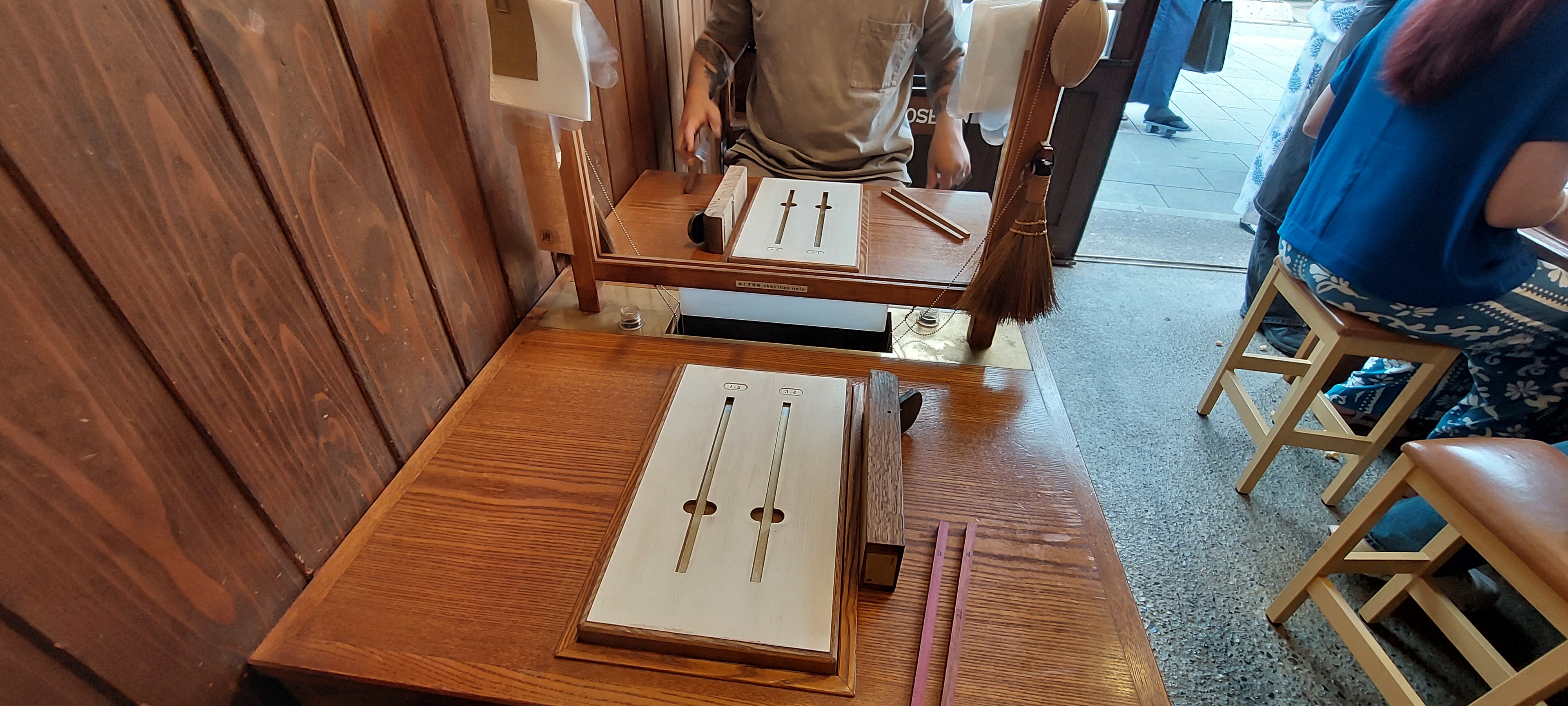 Once it’s your turn, the staff will show you the wood pieces you can choose from to carve your chopsticks. Prices vary depending on the wood, ranging from JPY1,980 to around 6,600. From here, you’ll use a wood plane to get the chopstick to the right size and shape, then sand and oil it down. The staff will walk you through the whole process and answer any questions. And if you want to take a video, they even have holders where you can secure your phone and get a good angle while you work.