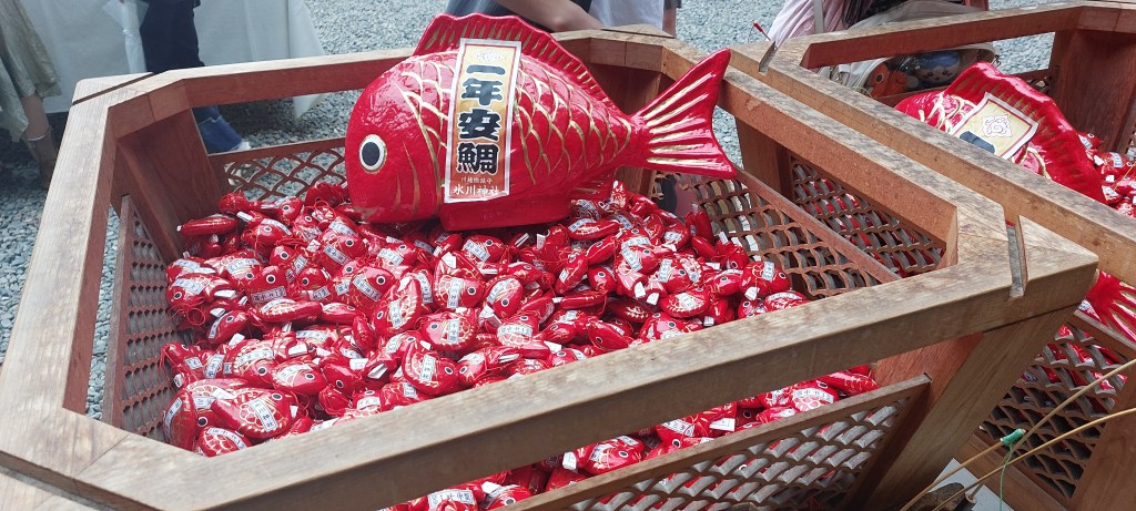 For a small donation of JPY300, you can also use a tiny fishing rod to catch a red or pink snapper charm that comes with a fortune. A heads up – the fortune is printed in Japanese, so you may need to ask a friend who’s fluent or just use Google Translate to get an idea of what your future holds.